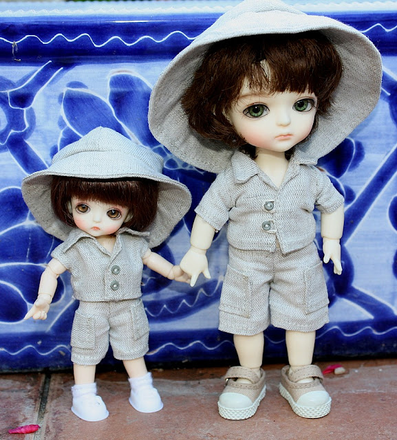 The same customer wanted some old fashioned suits for her 27cm boy dolls. Below is Fiona, my Fairyland Little Fee, modelling them for me. I made one black and one brown suit.....based on the photo she sent, also below: