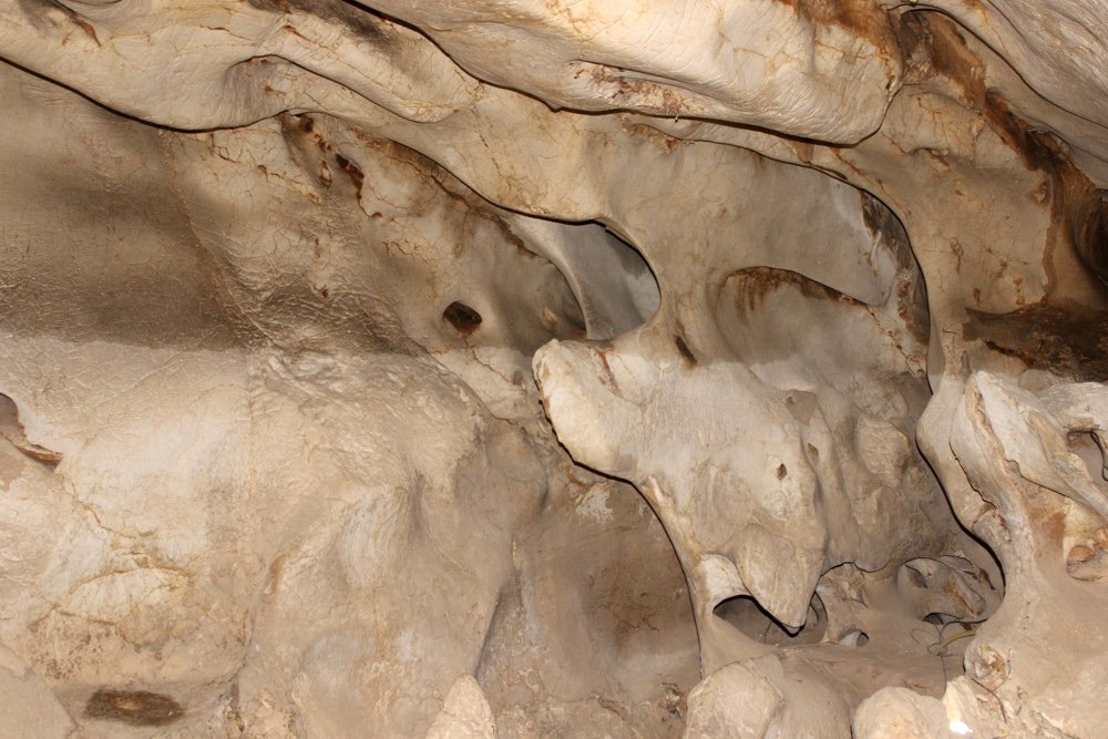 Inside the caves many of the walls contain fossils of marine life. There were signs of shells and bones in the rocks below.